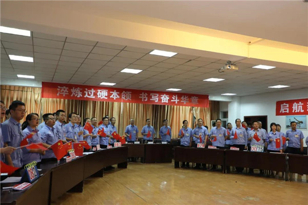全體人員揮動著國旗和黨旗齊聲高唱《沒有共產(chǎn)黨就沒有新中國》,給競賽活動增添了一抹“紅色韻味”。