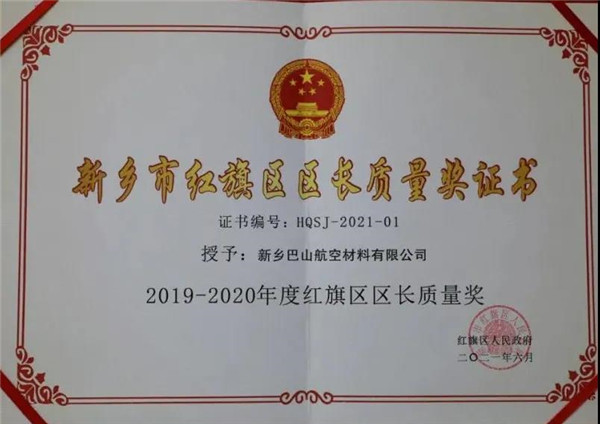 喜報丨巴山公司喜獲新鄉(xiāng)市紅旗區(qū)區(qū)長質(zhì)量獎
